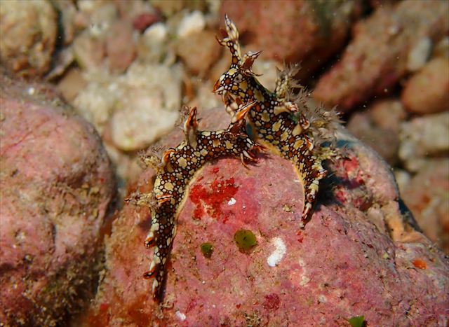 | メモ | 晴れてるので光が綺麗なポイントへ。その光の中で群れ泳ぐハタンポたちがとても綺麗〜。ここは水深が浅いのでノーストレスで潜れるのもいい所。 後半はゆっくり小物生物たちを探して遊びました。 |