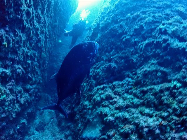| メモ | 3本目になると本降りになってきて雷もゴロゴロ鳴ってたので安全のために川本船番・棚町ガイドで。 エントリー前に船のすぐ近くにイルカの群れ登場!昨日も見たのでこれで2日連続だ♪ みんなが潜ってる様子を船の上から見てるとエアーのすぐ近くでイルカが群れてたのでてっきり水中でも見れてるかと思ったんですが・・・、残念ー! 時々きりもみジャンプを披露してくれたりとても可愛い群れでした。 しかし帰りはどしゃ降り!雷がヤバかった。 |
