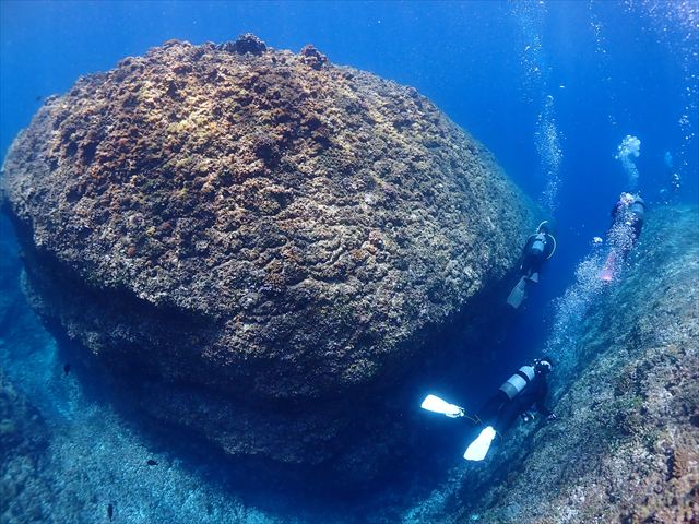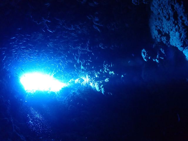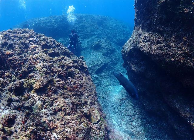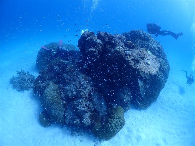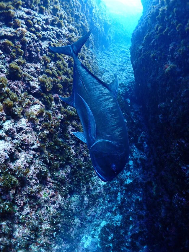 | メモ | 2チームに分かれて別々のポイントを潜ってます。棚町チームは濁りのない青い魔王で美しい光を独占して楽しめたようです。 川本チームはクマザサハナムロの群れを必死に追いかけてるアオチビキの様子をゆっくり観察。クマザサハナムロの方がずっと素早そうで遊ばれてる感じのアオチビキ。あれではどう頑張っても永遠に捕食出来なさそう。 |