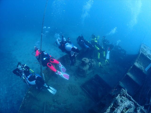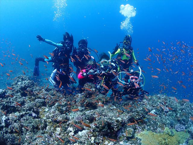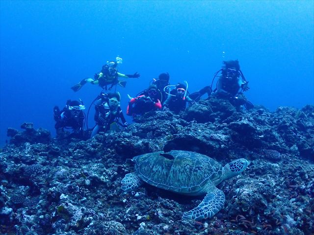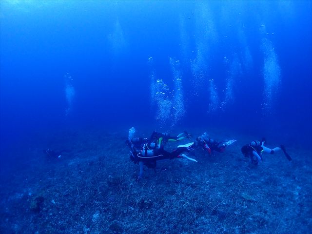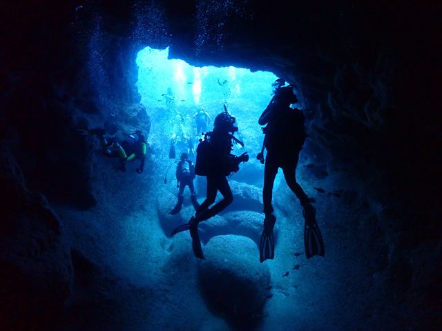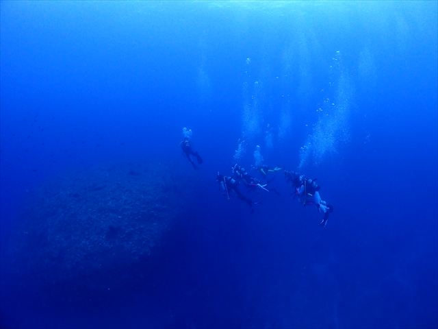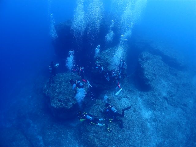 | メモ | ついに合宿ラストダイブ。名残惜しい気も…。そして最後のシメはみんなでのんびり潜れるところに。360°真っ赤なアカネハナゴイの群れに囲まれて癒しのひと時を過ごせました。スネークホールの中から見る幻想的なブルーがとても綺麗〜。 これで6日間の琉球大学・夏合宿は無事終了。今回は台風の気配が全くなくこの時期にしては珍しいほどいい天気が続いてくれて助かりました。 参加したみなさん、お疲れ様でした。これからもチームワークを大切に安全に楽しく潜り続けてください。 |