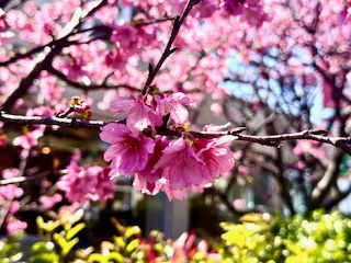 先月末からぼちぼち咲き始めてた寒緋桜が満開を迎えてます。染井吉野もいいですが寒緋桜は南国らしく情熱的な色合でこっちも好きです。今日は気温25℃で2月とは思えないような陽気!