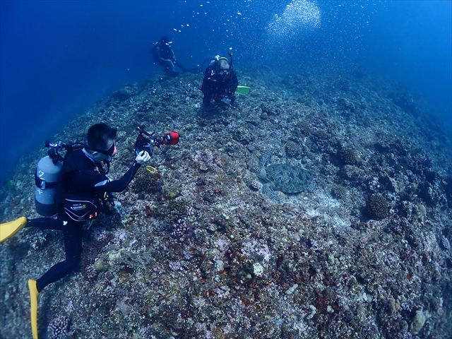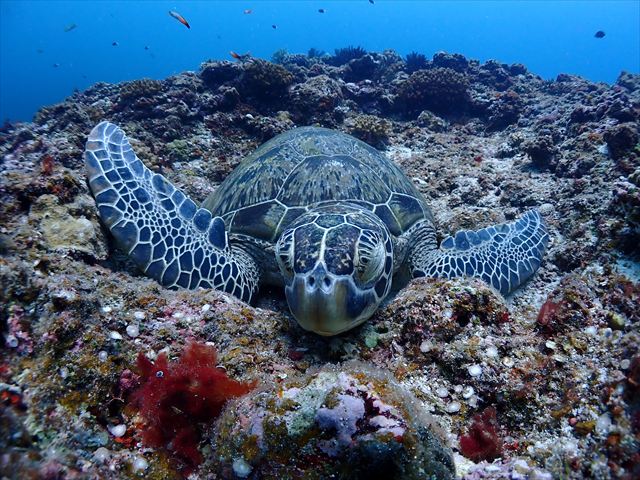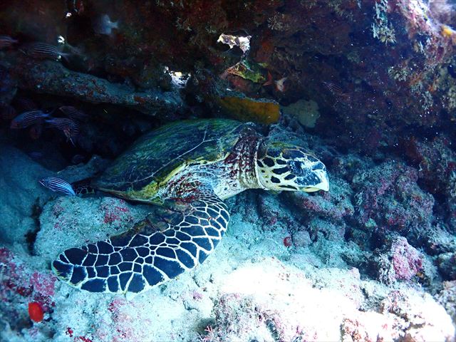 | メモ | 激流という程でもないですが「中の上」という感じの流れです。食後の腹ごなしにはちょうどいいかな? アオウミガメとタイマイ、どちらも眠そうで我々が近寄っても全く無反応。おかげでみなさん大接近してじっくり撮影♪ |