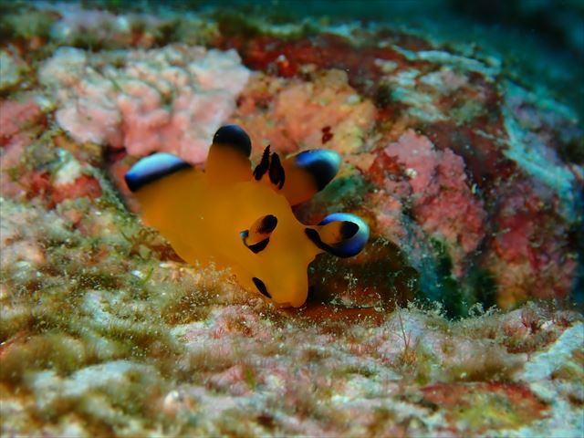 | メモ | 昼頃から青空が広がって晴れてきました!太陽があると気分的にちょっと暖かい気がします。3本目もそのまま小物探しの続きを。 棚町ちゃんがピカチュウ(ウデフリツノザヤウミウシ)を発見!宮古では滅多に見ることが出来ないレアな子です。久しぶりに見たけどとても可愛くてやっぱ人気が高いのは納得。 |