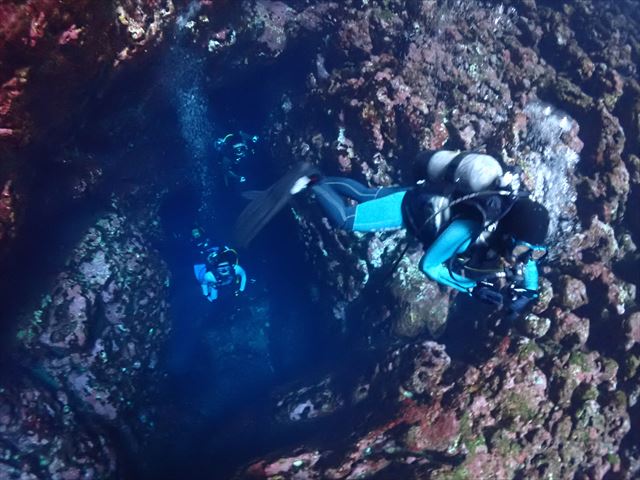 | メモ | 宮古らしい地形ポイント「ミニ通り池」。エントリーしてすぐにアオウミガメが登場してくれました。おかげでけっこう泳いだので体がポカポカ。 結局今日は1度も太陽は出て来ず。明日からに期待です! |