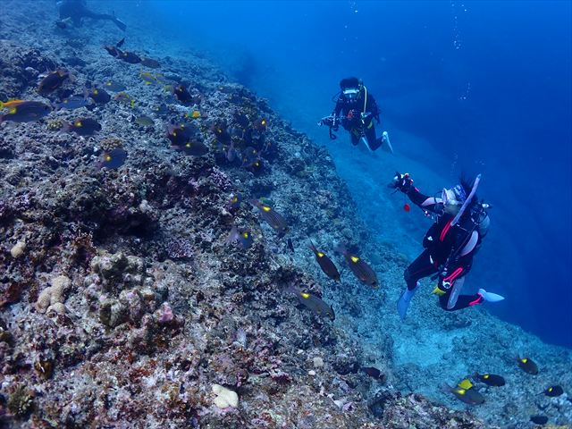 | メモ | ポイントへ移動中にハシナガイルカの群れに遭遇! 群れの中のちびっ子イルカが船の方へ遊びに来てくれました。まだ小さくて可愛い〜〜♡ジャンプも披露してくれましたよ。 今日は全員超常連ゲストのみなさまでしたので敢えて「通り池」には入らずその周りで遊ぶことに。いつもと違った景色、たまにはこんなのも新鮮で良い♪ |