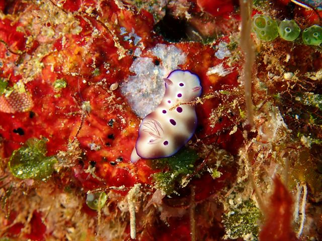 | メモ | 水面近くに4匹のロウニンアジがグルグルしてました。太陽が出て辺りがもう少し明るければもっとよく見えたのに。 そろそろ小さなウミウシたちが出て来てますね♡ |