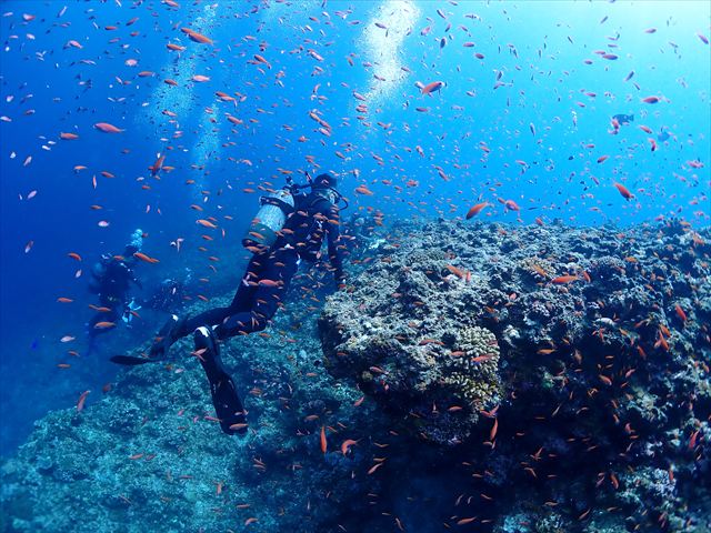 | メモ | 波とうねりを避けて静かな伊良部島へワープ!1、2本目共に移動が長かったのであまり動かずゆっくり潜れるところにしました。 真っ赤なアカネハナゴイの群れに囲まれて癒しのひと時。生命力あふれる海♪ |