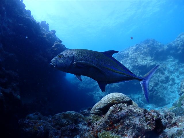 | メモ | さらに風が強くなってきました。無理はせず静かさ優先のポイントチョイス。うねりの無い浅場でゆっくりの3本目。 アオウミガメが3匹登場。根の上の方にはノコギリダイがたくさん群れてました。ハナゴイの群れも綺麗。 |