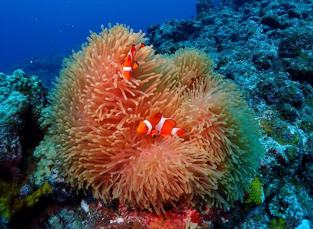 | 生物 | アオウミガメ、カクレクマノミ、ハナゴイ、ノコギリダイ、ヒトヅラハリセンボン、アオリイカ、ホソカマス、 | |||||||