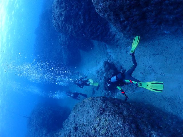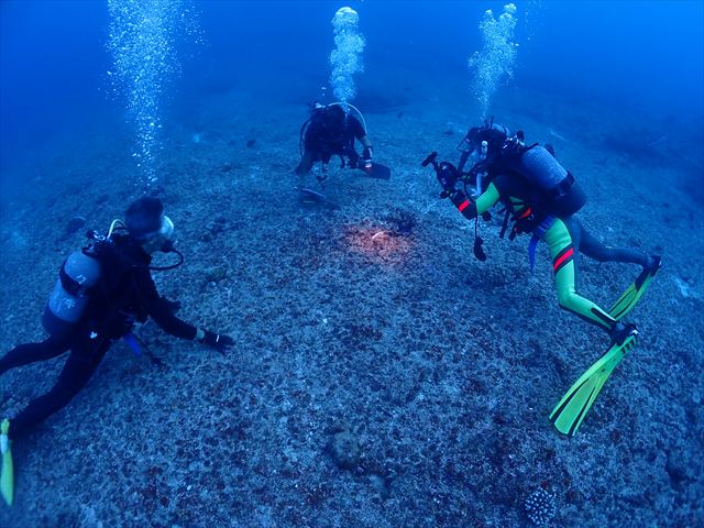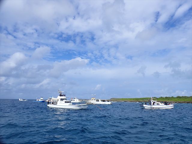| メモ | ホントは1本目の近くで2本目も潜ろうかと考えてましたがあまりのうねりに泣く泣く断念。少しでも静かな場所を求めて移動です。 でもそこでは他ショップ船も集結してて”仁義なき係留ブイの争奪戦”が勃発してました!まあこの天気だから仕方ないか・・・。 なんとか少し離れた場所で使えそうなブイを見つけて潜れたけど他の船のみんなも苦労してますね。早く平和で穏やかな海に戻って欲しい。 |