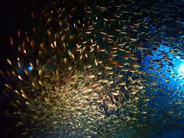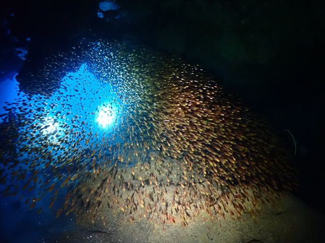 | 生物 | タカサゴ、コクハンアラの幼魚、ツバメタナバタウオ、ウコンハネガイ、アカマツカサ&ベニマツカサ、クロスジリュウグウウミウシ、ソリハシコモンエビ、アオギハゼ、イロブダイの幼魚、イワシの群れ、 | |||||||