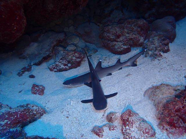 | メモ | この時間になるとやっと正真正銘の晴れに!太陽光を浴びるのは久しぶりな気がする? ゲストは最終日なので明日のフライトを考慮して浅場でのんびり地形と生物観察を。 仲良しホワイトチップ兄弟や可愛いノコギリハギ、メタボなカクレエビに超小さなトウモンウミコチョウ。明るい水中は気持ちいい〜♪ |