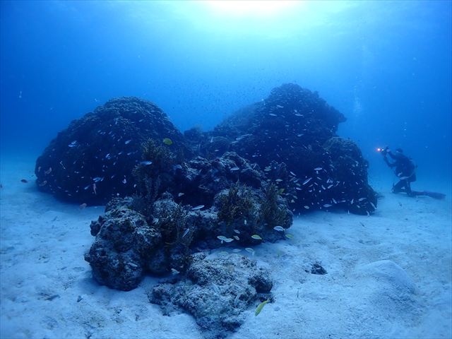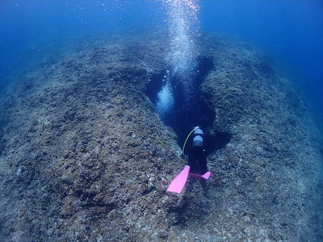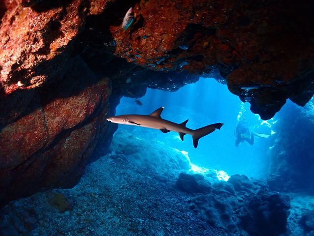 | メモ | 穴の中に全長50〜60センチの可愛いホワイトチップの子供が!過去にも何度かここに棲みついた先輩シャーク達はいたけどみんな大きくなって巣立って行きました。そして今回新たなチビッ子がやって来た!しばらくはここのアイドル確定。 トンネルを通過中にふと見上げると美しい光のカーテンも。さすが真夏、光の季節! |