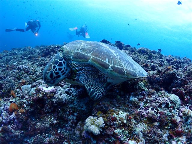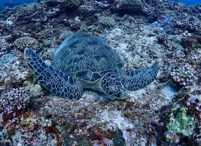 | メモ | 甲羅の直径30センチくらいのちびウミガメがいました。近寄っても全然逃げない可愛い子♡ そしてその傍には顎を岩に乗せてバンザイしながら寝てるだらしない大ウミガメの姿も。平和ですねー。 | |||||||