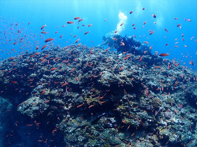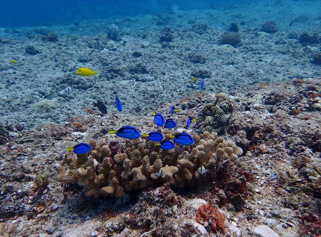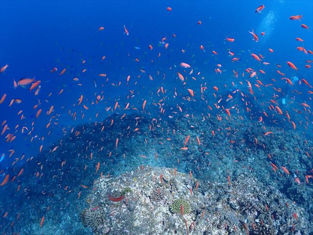 | メモ | 赤の群れ、紫の群れ、青と黄の群れを眺めながらのんびりダイブ。いつ来てもここの色とりどりの魚たちに癒されてます。 | |||||||