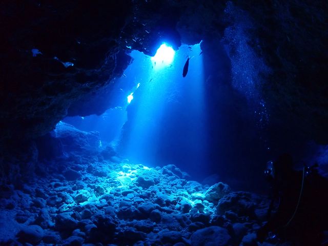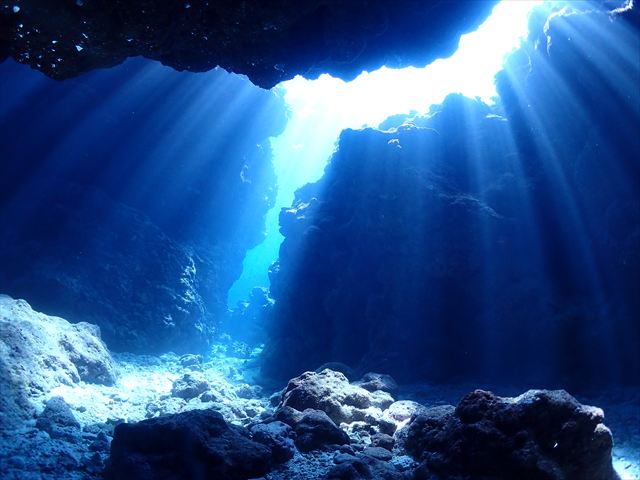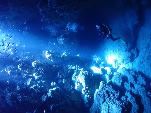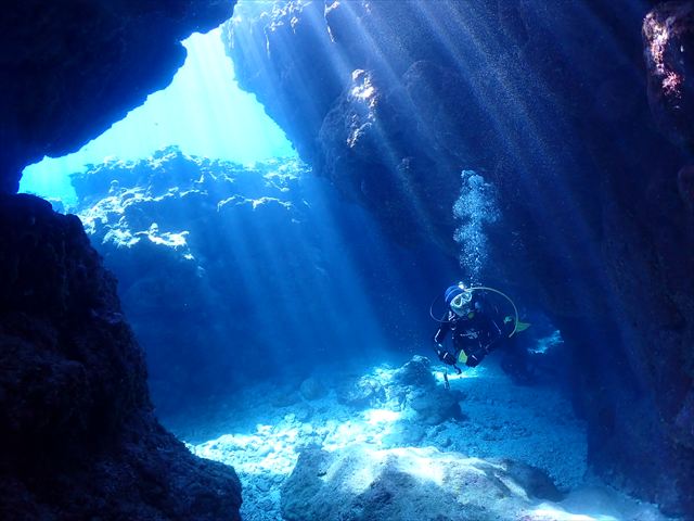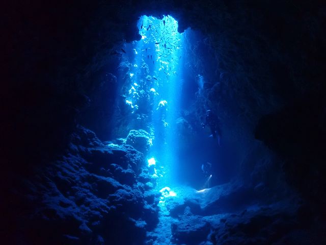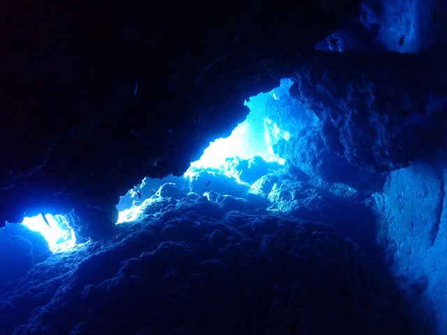 | メモ | ホントは333を狙ってましたが流れが強過ぎて断念。海面は真っ平らなのに中はガンガンに流れてました。無理はせずポイントを変えてゆっくり潜ることに。 トンネル内に降り注ぐ太陽光が超絶美しい…。もうそれだけで充分! |