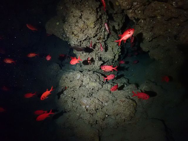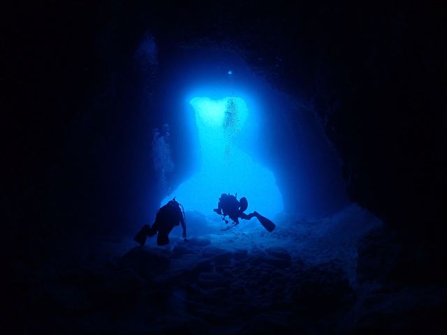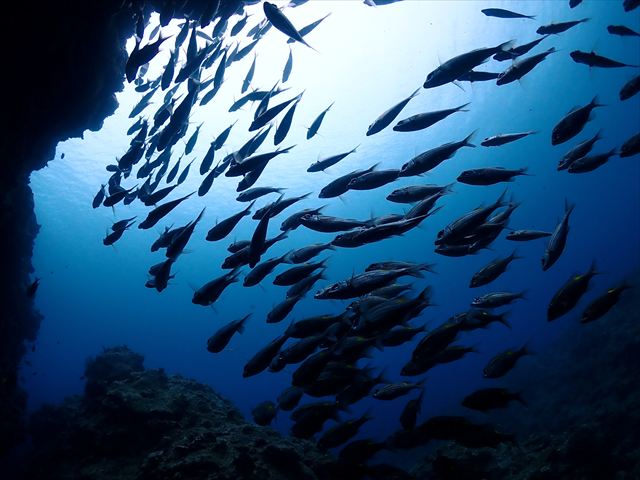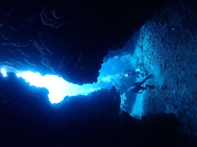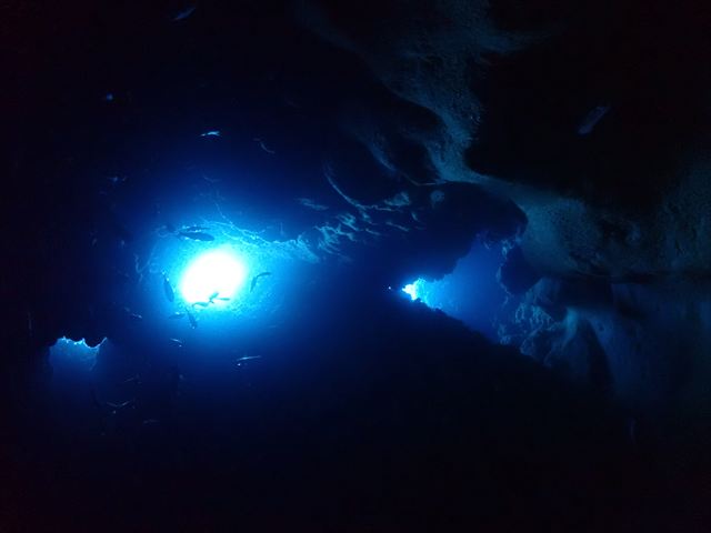 | メモ | 地形ポイントってそれぞれ特徴的なので潜った後の印象が残りやすい。 ここはL字型のトンネルを上から入って横穴を抜けるという地形派ダイバーにはたまらないコースで潜るポイント。 特に下から縦穴を見上げた時の光景は強く印象づけられます!真っ暗な穴の中から見る深〜い青が良いんですよね。 |