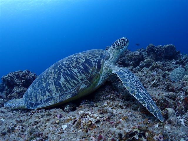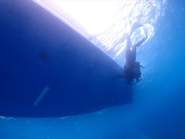 | メモ | 大きなアオウミガメがお昼寝中。一応こちらは見てますが近寄っても全然逃げる素振りなし。 弱肉強食の自然界でこんなにおっとりとした生物がいていいんでしょうか?特に天敵がいないのかな? 平和の象徴のようなアオウミガメ♡こちらまで癒されます。。。 4枚目の写真は波による揺れの中、吐き気と闘いながら船底を掃除してる棚町ちゃん! |