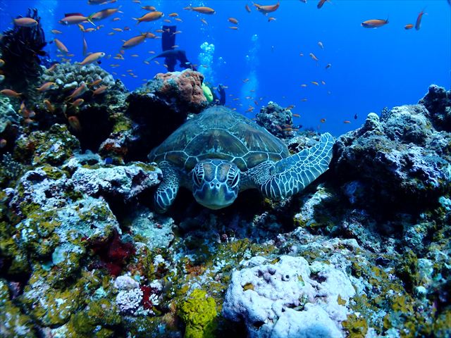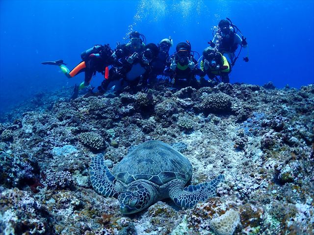 | メモ | 360°絶景ブルーの中でお弁当タイム、「17END」へやって来ました。そして食後はみんなでひと泳ぎ♪ 3本目は伊良部島へウミガメに会いに♡ 大小いろんなサイズのカメたちがお昼寝してたり泳いでたり甲羅を掃除してたり…。なんてのどかで平和な光景。 |