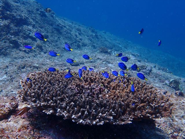 | 生物 | ナンヨウハギの幼魚、イスズミ、アカマツカサ、ミズタマサンゴ、バラフエダイ、タカセガイ、 | |||||||